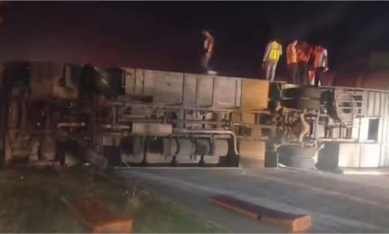 मिली जानकारी के मुताबिक, यह घटना 12 अप्रैल की शाम करीब 7:36 बजे की है। बस (नंबर: BR02PC2291) यात्रियों को लेकर नोएडा से दरभंगा के लिए निकली थी। जैसे ही बस नौहझील क्षेत्र के माइलस्टोन 76 के पास पहुंची, ड्राइवर ने अचानक संतुलन खो दिया और बस डिवाइडर से टकराकर बीच सड़क पर ही पलट गई।