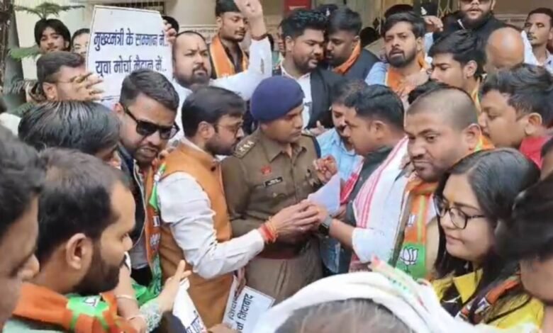 कांग्रेस के प्रदर्शन में मुख्यमंत्री की तस्वीर से अभद्रता पर बवाल, भाजयुमो का घेराव, कांग्रेसियों पर FIR दर्ज