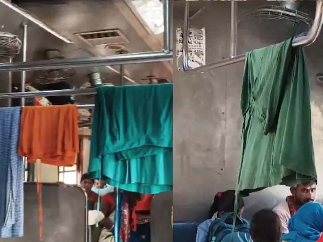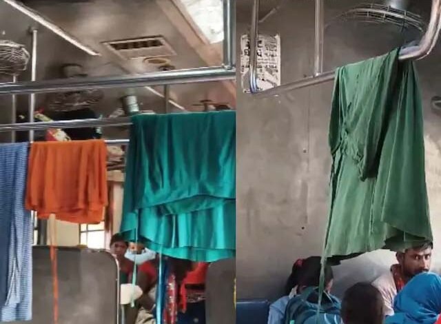 चलती ट्रेन के अंदर बना ‘धोबी घाट’, ऊपर सूख रहे कपड़े और नीचे बैठे यात्री
