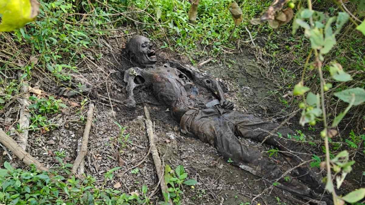 झाड़ियाें में मिला नर कंकाल, शव की शिनाख्ती में जुटी पुलिस