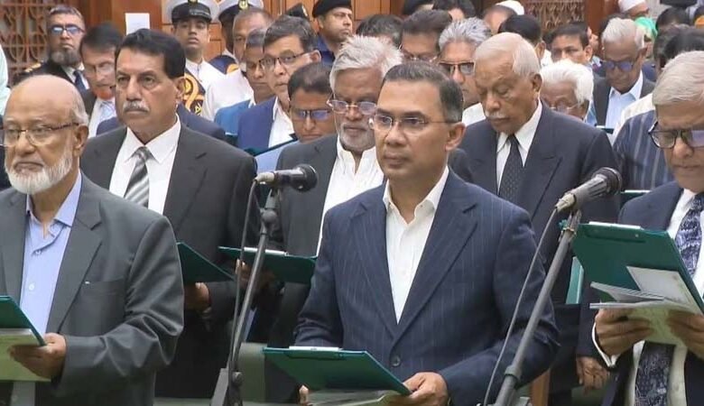 सूत्रों ने कहा कि तारिक रहमान के नेतृत्व में मंत्रिमंडल का आकार बड़ा होगा, जिसमें 25 पूर्ण कैबिनेट मंत्री और 24 राज्य मंत्री होंगे। पूर्ण कैबिनेट रैंक पाने वालों में मिर्जा फखरुल इस्लाम आलमगीर, अमीर खुसरू महमूद चौधरी, सलाहुद्दीन अहमद, इकबाल हसन महमूद, मेजर (सेवानिवृत्त) हाफिज उद्दीन अहमद बीर बिक्रम, अबू जफर मोहम्मद जाहिद हुसैन, डॉ. खलीलुर रहमान (टेक्नोक्रेट), अफरोजा खानम रीता और निताई रॉय चौधरी शामिल होंगे। वहीं, राज्य मंत्री बनने वालों की सूची में एम राशिदुज्जमां मिल्लत, अनिंद्य इस्लाम अमित, मोहम्मद शरीफुल आलम, शमा ओबैद इस्लाम, सुल्तान सलाहुद्दीन टुकू, बैरिस्टर कैसर कमाल और फरजाना शरमीन शामिल हैं। इससे पहले सुबह, बीएनपी सांसदों को मुख्य चुनाव आयुक्त एएमएम नासिरउद्दीन ने बंगलादेश राष्ट्रीय संसद के साउथ प्लाजा में शपथ दिलाई। यह उन संवैधानिक प्रावधानों के अनुरूप है जो अध्यक्ष या उपाध्यक्ष की अनुपस्थिति में चुनाव प्रमुख को यह जिम्मेदारी सौंपते हैं।