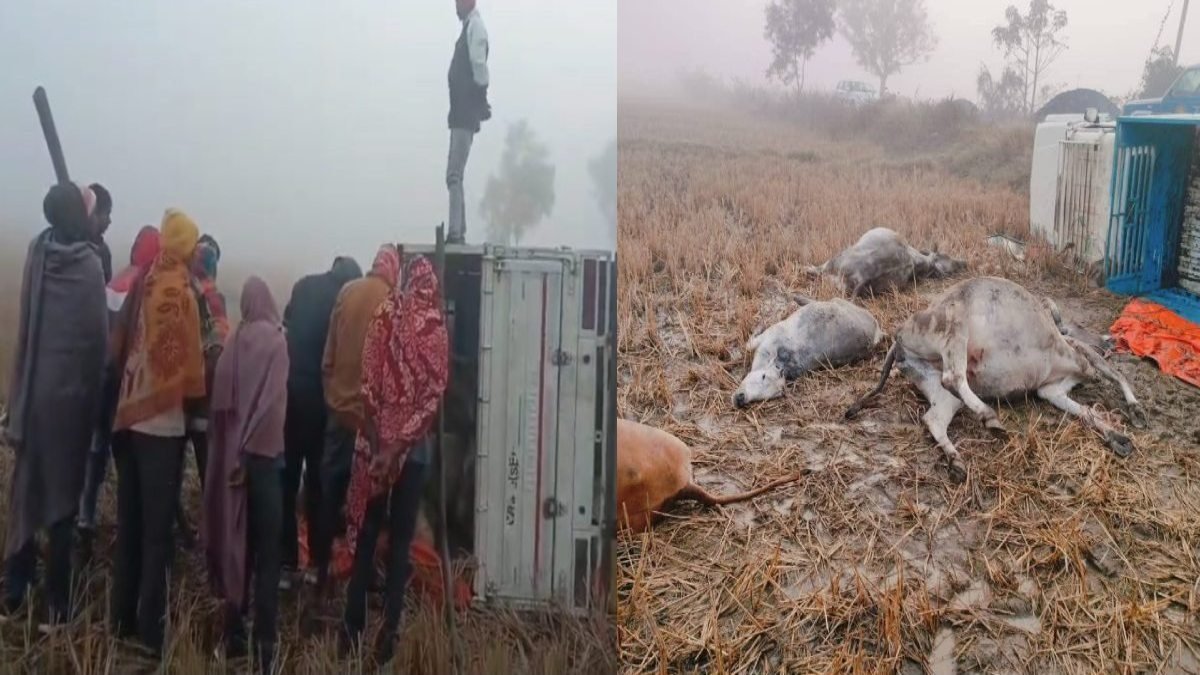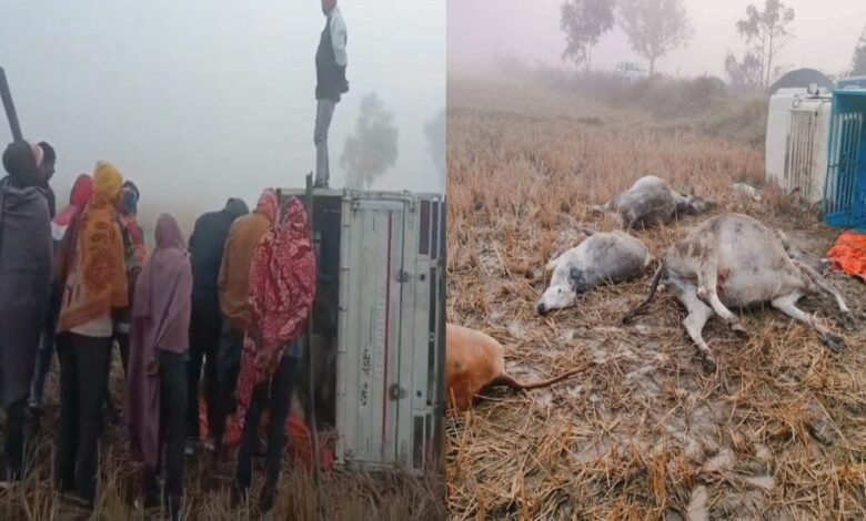 तेज रफ्तार पिकअप पलटने से 4 गौवंशों की मौत, 5 घायल, तस्कर मौके से फरार