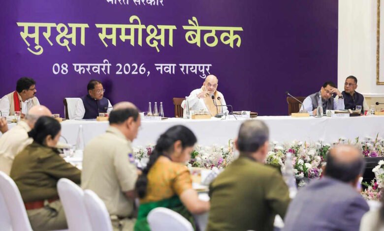 नक्सल नेटवर्क तोड़ने के साथ नक्सली सरेंडर और गांवों में इंफ्रास्ट्रक्चर डेवलपमेंट पर अधिकारियों से चर्चा की शाह ने