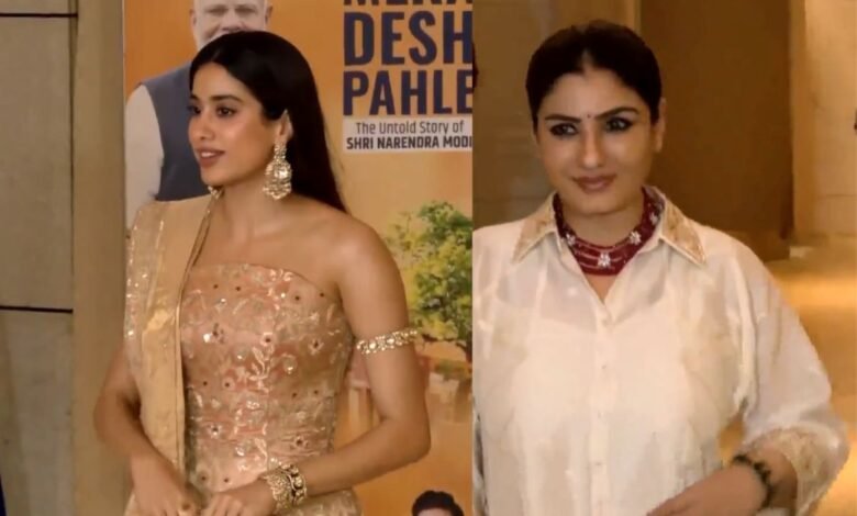 संगीतमय गाथा ‘मेरा देश पहले: द अनटोल्ड स्टोरी ऑफ श्री नरेंद्र मोदी’ की स्क्रीनिंग में अभिनेत्री जान्हवी कपूर भी शामिल हुईं.