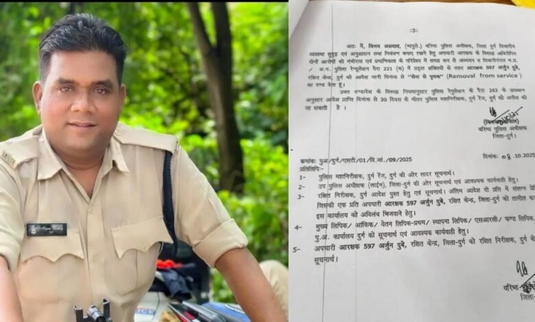 दुर्ग। एसएसपी विजय अग्रवाल ने एक बार फिर सख्त कदम उठाते हुए पुलिस विभाग में अनुशासन का संदेश दिया है. उन्होंने यातायात विभाग में पदस्थ आरक्षक अर्जुन दुबे को ओवरलोड वाहनों से अवैध वसूली के आरोप में सेवा से बर्खास्त कर दिया है.