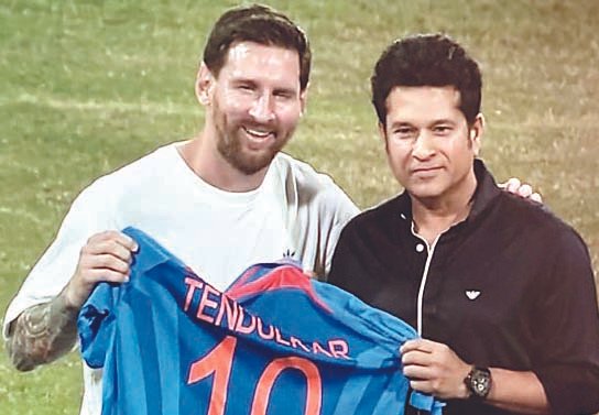 लियोनेल मेस्सी और सचिन तेंदुलकर आखिरकार आमने-सामने आए। दो आइकॉनिक नंबर-10 एक ही स्टेज पर थे। यह सच में सपनों जैसा था। सचिन ने मेस्सी को अपनी इंडिया जर्सी दी और मेस्सी ने महान बल्लेबाज को 2026 फीफा वल्र्ड कप की ऑफिशियल बॉल गिफ्ट की।