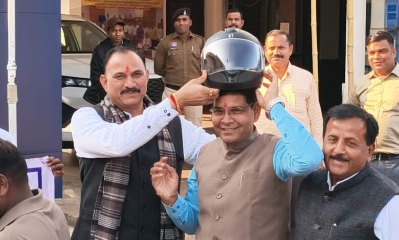 बलौदाबाजार. स्वास्थ्य मंत्री श्यामबिहारी जायसवाल एवं राजस्व मंत्री टंकराम वर्मा ने बलौदाबाजार में यातायात हेलमेट जागरूकता रैली को हरी झंडी दिखाकर रवाना किया। इस मौके पर सुरक्षा की शपथ दिलाई। इस अवसर पर स्वास्थ्य मंत्री श्यामबिहारी ने राजस्व मंत्री टंकराम वर्मा को हेलमेट पहनाया। कार्यक्रम में कलेक्टर दीपक सोनी, एसपी भावना गुप्ता सहित पुलिस के अधिकारी, जवान व बड़ी संख्या स्कूली बच्चों ने मंत्रियों का स्वागत किया। वहीं एसपी कार्यालय पहुंचने पर स्कूली बच्चों ने गुलाब का फूल देकर मंत्रियों का स्वागत किया।