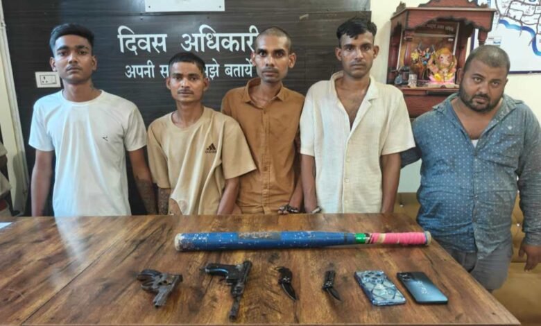 गिरफ्तार आरोपियों में लुट्टू पांडेय, शिवम मिश्रा, लक्की यादव, शैलेश चौबे और शंभू यादव शामिल हैं. पुलिस ने आरोपियों के कब्जे से एक रिवॉल्वर, एक एयर गन, एक चाकू, एक बेसबॉल स्टिक और एक बुलेट जब्त की है.