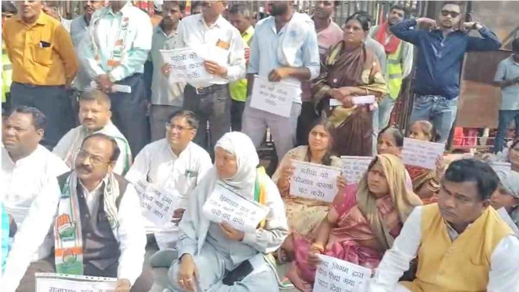 175 से अधिक बेजा कब्जा हटाने को लेकर नगर निगम की सामान्य सभा में हंगामा : धरने पर बैठे कांग्रेस पार्षद