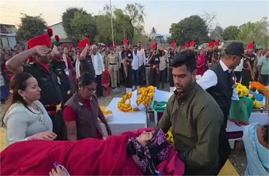 रविवार को प्रमोद जाधव का अंतिम संस्कार उनके पैतृक गांव में राजकीय सम्मान के साथ किया गया। अंतिम विदाई के समय वह दृश्य हर किसी की रूह तक हिला देने वाला था— पत्नी स्ट्रेचर पर लेटी हुई, आंखों में आंसू, सामने तिरंगे में लिपटा पति और पास खड़ी महिला गोद में 8 घंटे की मासूम बेटी। जिस बेटी को पिता की उंगली पकड़कर चलना था, वह अपने पिता को आखिरी सलाम दे रही थी।