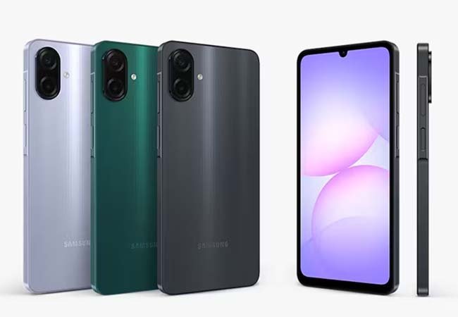 नई दिल्ली। Samsung ने भारत में अपनी नई बजट स्मार्टफोन सीरीज Galaxy A07 4G, Galaxy F07 4G और Galaxy M07 4G को लांच किया है। Galaxy A07, F07 और M07 में 6.7-इंच का PLS LCD HD+ डिस्प्ले दिया गया है जो 90Hz रिफ्रेश रेट सपोर्ट करता है। फोन की कीमत की बात करें तो Samsung Galaxy A07 4G भारत में 8,999 रुपए में लांच हुआ है, जिसमें 4GB रैम और 64GB स्टोरेज वाला वेरिएंट मिलता है। फोन को केवल एक ही वेरिएंट में पेश किया गया है। ग्राहक इसे ग्रीन, ब्लैक और लाइट वॉयलेट कलर में खरीद सकते हैं। वहीं, Samsung Galaxy F07 की कीमत 7699 रुपए रखी गई है। यह स्मार्टफोन सिर्फ एक कलर ऑप्शन ग्रीन में मिलेगा। आप इस स्मार्टफोन को Falipkart से ऑर्डर कर सकते हैं। वहीं Galaxy M07 4G को कंपनी ने 6999 रुपए में लांच किया है। यह स्मार्टफोन 4जीबी रैम और 64जीबी स्टोरेज में मिलेगा।